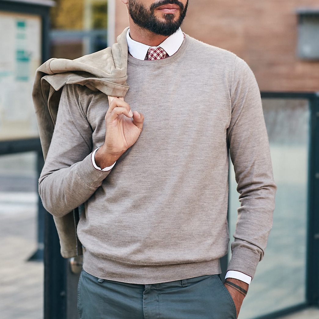 Le occasioni d’uso sono tante, quelle della maglia girocollo ancora di più. Tra i capi basic più indossati dall’uomo, il nostro evergreen é ideale per l’ufficio come nel tempo libero. Abbinalo a una camicia button down (mi raccomando il colletto sempre sotto il girocollo), aggiungete la cravatta se preferite, un paio di pantaloni slim fit e una giacca sartoriale magari in camoscio e cashmere Made by Tasselli per un look da lavoro elegante, comodo e non troppo formale. E per il tempo libero? Fate vincere il vostro lato più casual! Mixatelo a pantaloni chino o ai jeans: per uno stile fresco, contemporaneo ma sempre impeccabile! Indecisi su quale girocollo puntare per i vostri prossimi outfit? Scoprite il nostro morbidissimo Danilo Rondo: perfetto come sottogiacca, in cashmere e seta jaipur , é luminoso, leggero ma caldo. Una volta provato non potrete più farne a meno, parola di Tasselli Cashmere.