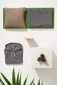 Design, sostenibilità, qualità. Tutto in un’unica Tasselli Cashmere Box. Dall’abbigliamento all’home wear, non ce la facciamo proprio a smettere di coccolare i nostri clienti, così abbiamo pensato a qualcosa di davvero speciale. Regala l’eleganza confortevole della felpa con zip e cappuccio, in blend di eco cashmere, un filato rigenerato e ecologico (60% cashmere rigenerato, 40% cashmere vergine). Ideale per gli appuntamenti più casual ma anche per starsene comodamente a casa, avvolti nel caldo relax del plaid in eco cashmere a costa inglese Tasselli abbinato al suo cuscino, sempre in cashmere rigenerato. Un vero tesoro di set!