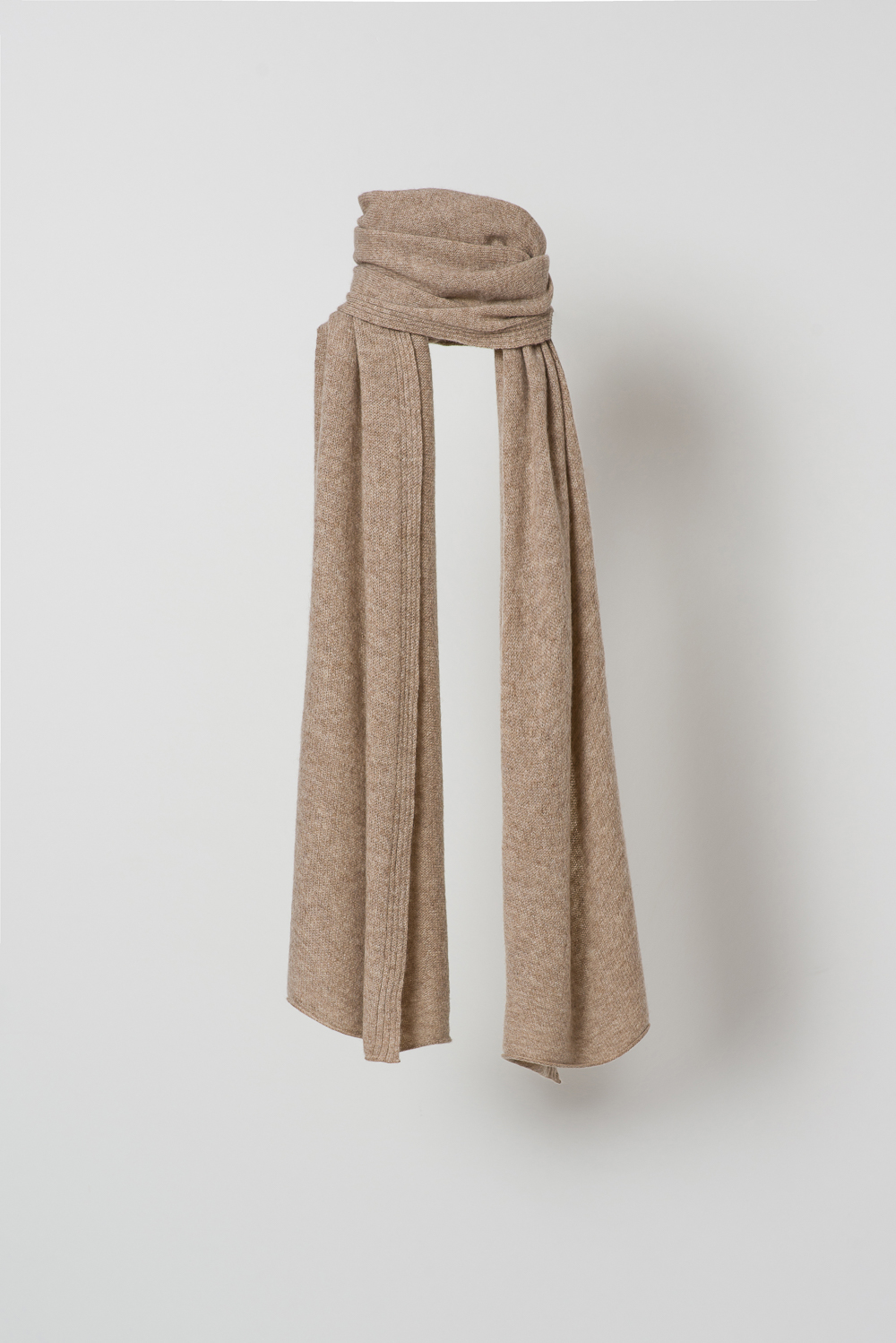 In tutta la sua purezza, il cashmere diventa protagonista di un accessorio immancabile in ogni guardaroba: la sciarpa. Morbidissima al tatto, questa sciarpa in maglia rasata, dai volumi contenuti, non è troppo ingombrante e è ideale per tutte le occasioni e stagioni.